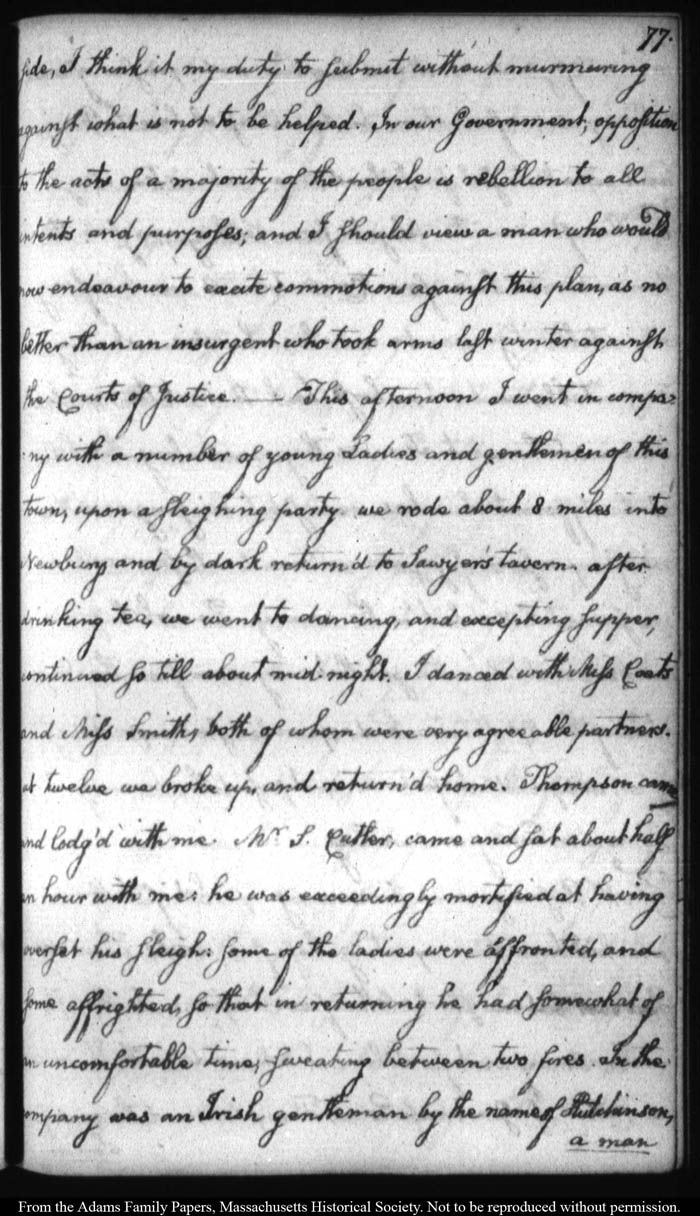 John Quincy Adams diary 12, 1 November 1787 - 17 September 1789 (with gaps); includes line-a-day entries 1 August 1788 - 31 December 1790, page 77