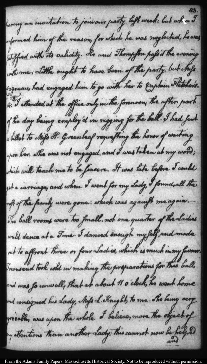John Quincy Adams diary 12, 1 November 1787 - 17 September 1789 (with gaps); includes line-a-day entries 1 August 1788 - 31 December 1790, page 83