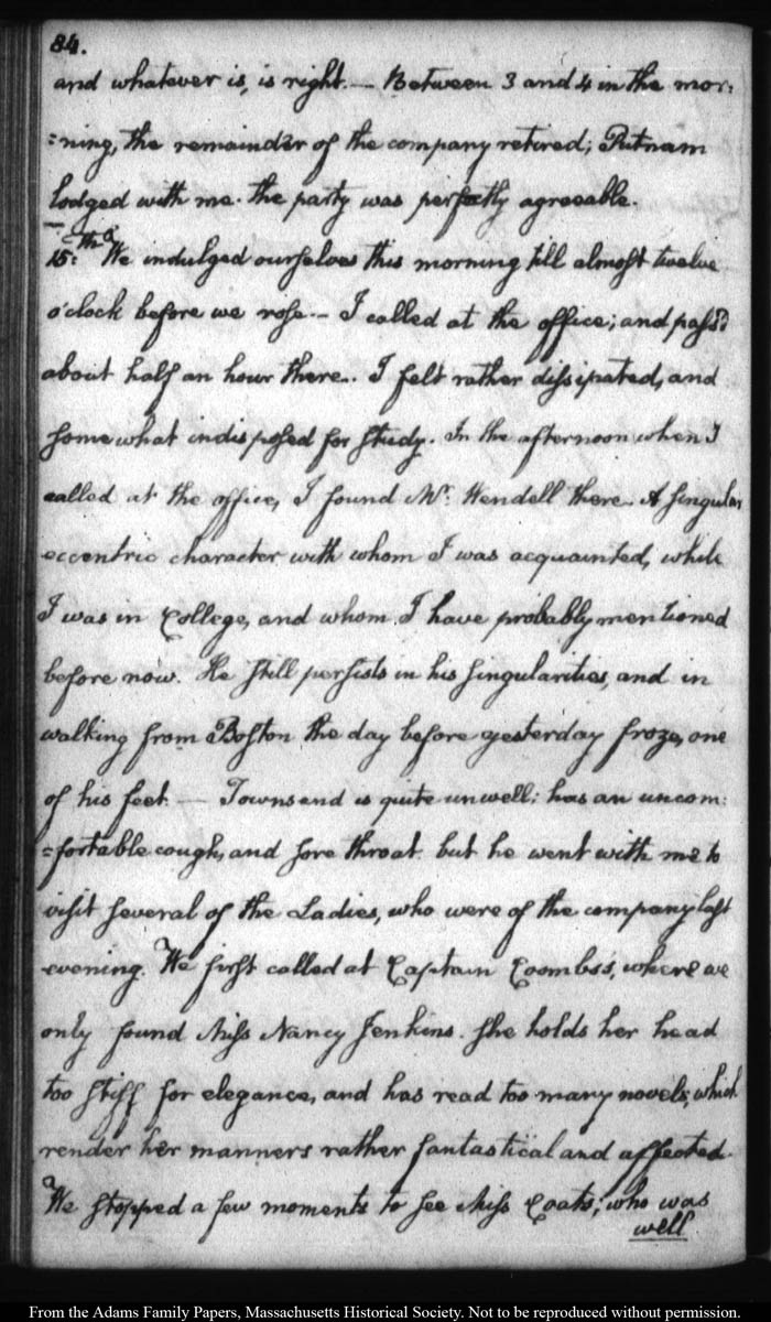 John Quincy Adams diary 12, 1 November 1787 - 17 September 1789 (with gaps); includes line-a-day entries 1 August 1788 - 31 December 1790, page 84