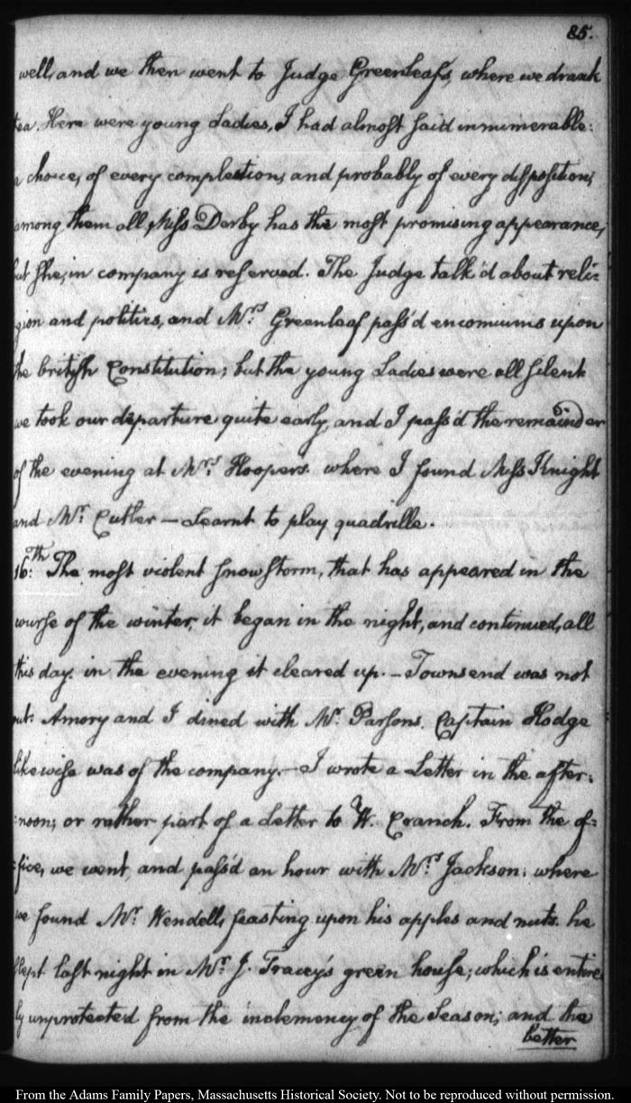 John Quincy Adams diary 12, 1 November 1787 - 17 September 1789 (with gaps); includes line-a-day entries 1 August 1788 - 31 December 1790, page 85