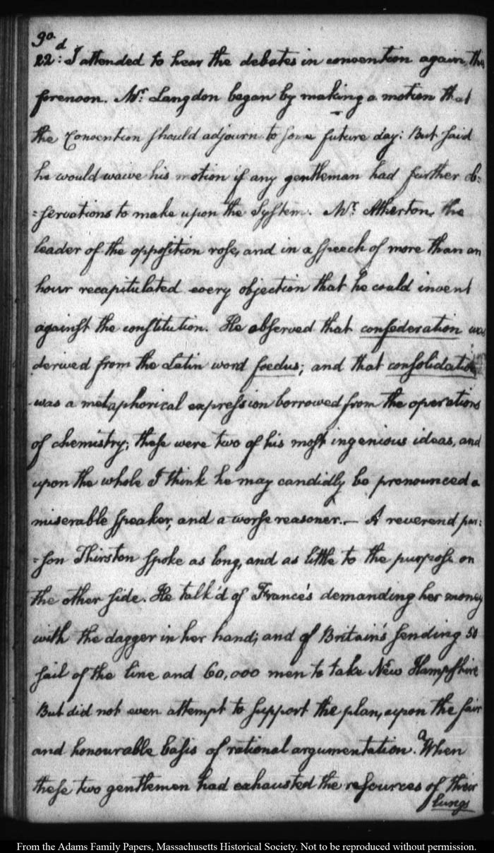 John Quincy Adams diary 12, 1 November 1787 - 17 September 1789 (with gaps); includes line-a-day entries 1 August 1788 - 31 December 1790, page 90