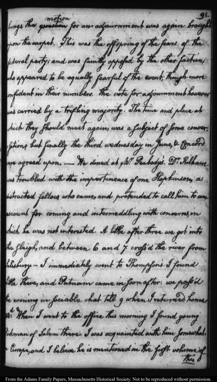 John Quincy Adams diary 12, 1 November 1787 - 17 September 1789 (with gaps); includes line-a-day entries 1 August 1788 - 31 December 1790, page 91