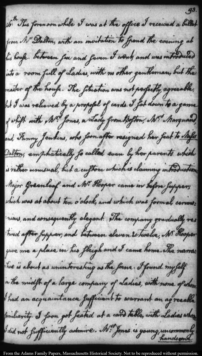 John Quincy Adams diary 12, 1 November 1787 - 17 September 1789 (with gaps); includes line-a-day entries 1 August 1788 - 31 December 1790, page 93