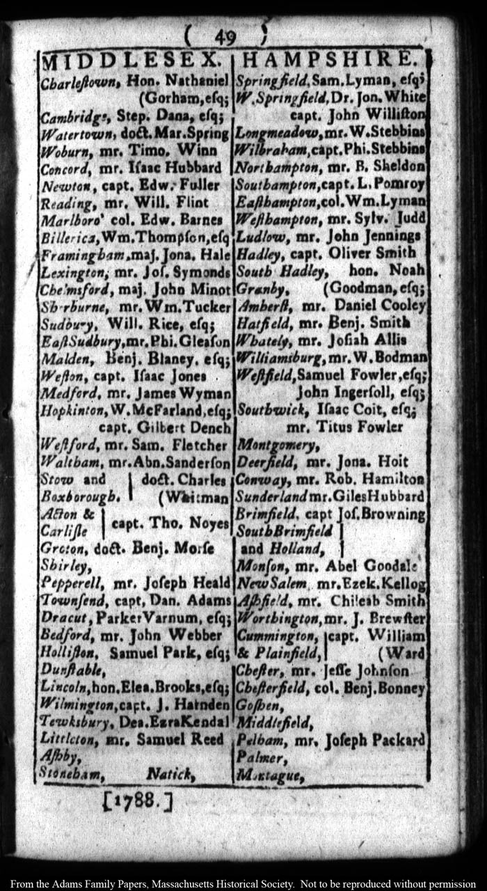 John Quincy Adams diary 13 (almanac), 1788, 1