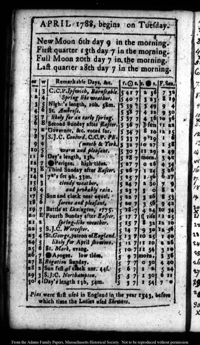 John Quincy Adams diary 13 (almanac), 1788, 1