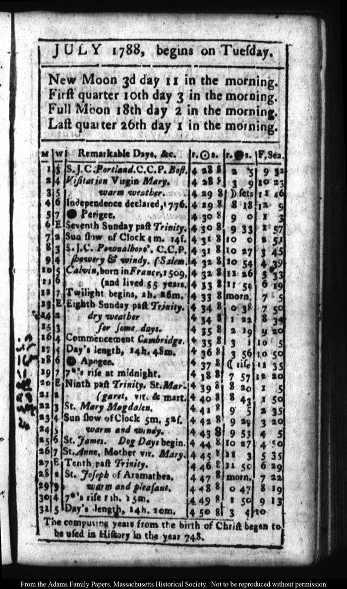John Quincy Adams diary 13 (almanac), 1788, 1