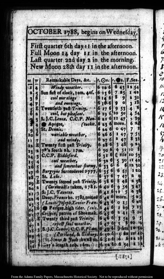John Quincy Adams diary 13 (almanac), 1788, 1