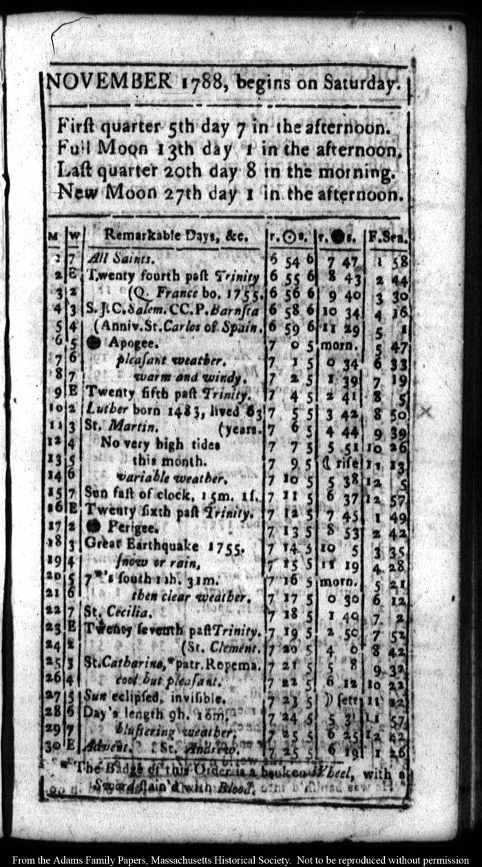 John Quincy Adams diary 13 (almanac), 1788, 1