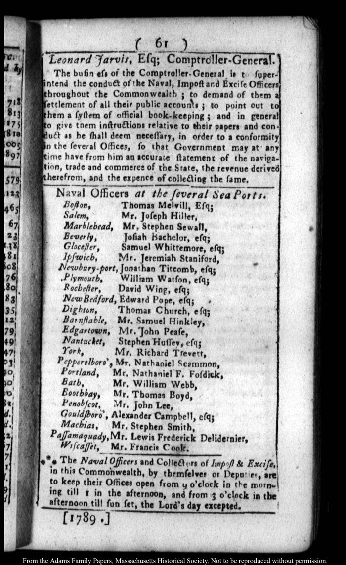 John Quincy Adams diary 14 (almanac), 1789, page 111