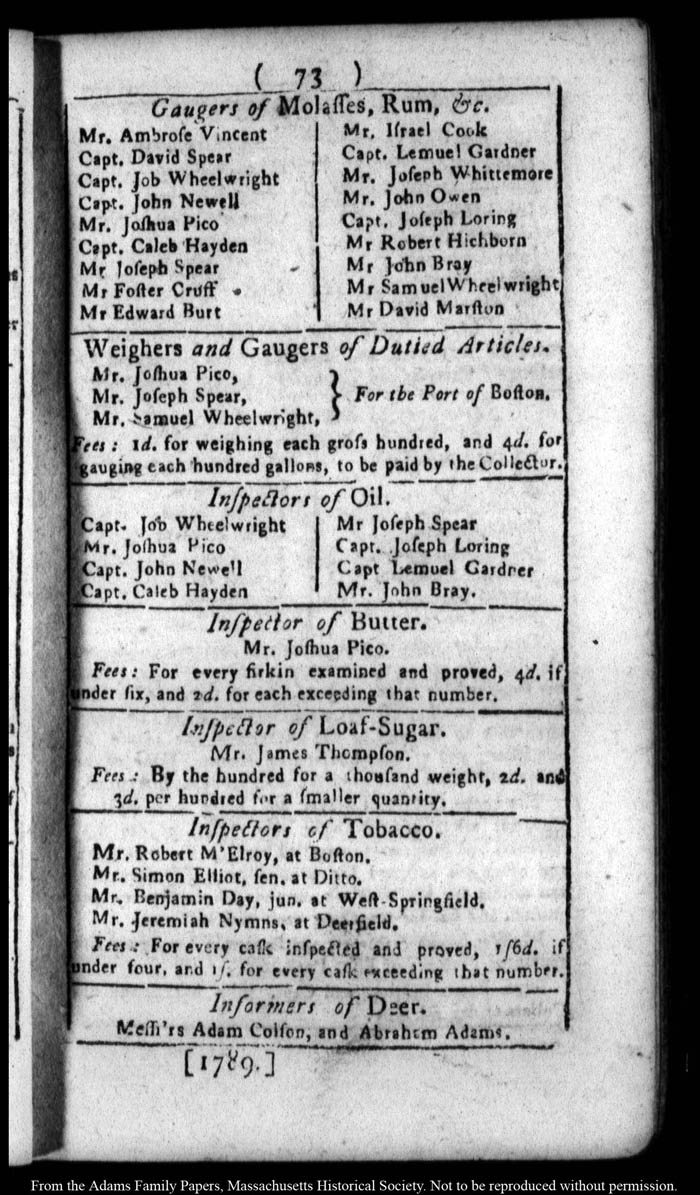 John Quincy Adams diary 14 (almanac), 1789, page 123