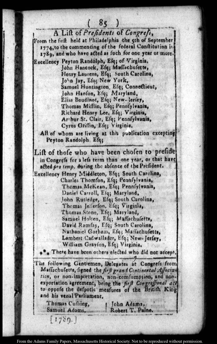 John Quincy Adams diary 14 (almanac), 1789, page 135