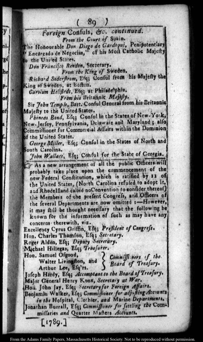 John Quincy Adams diary 14 (almanac), 1789, page 139