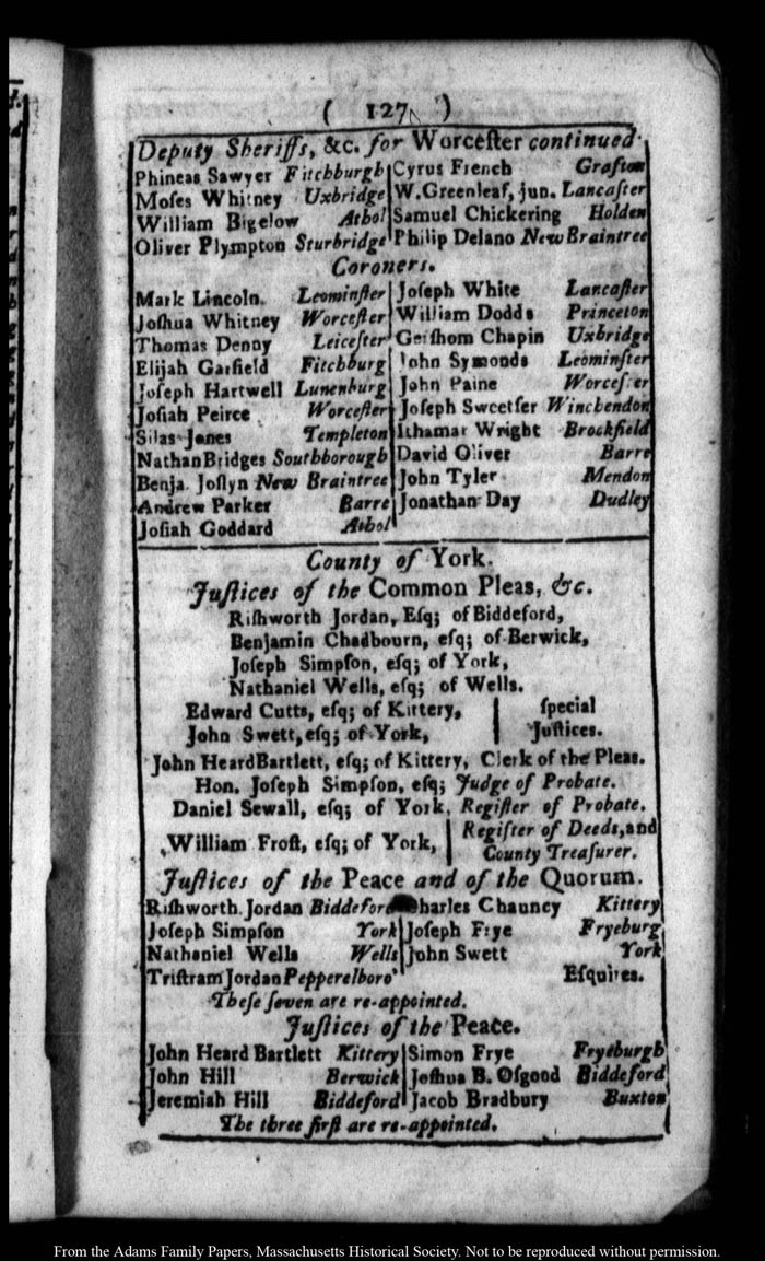 John Quincy Adams diary 14 (almanac), 1789, page 177