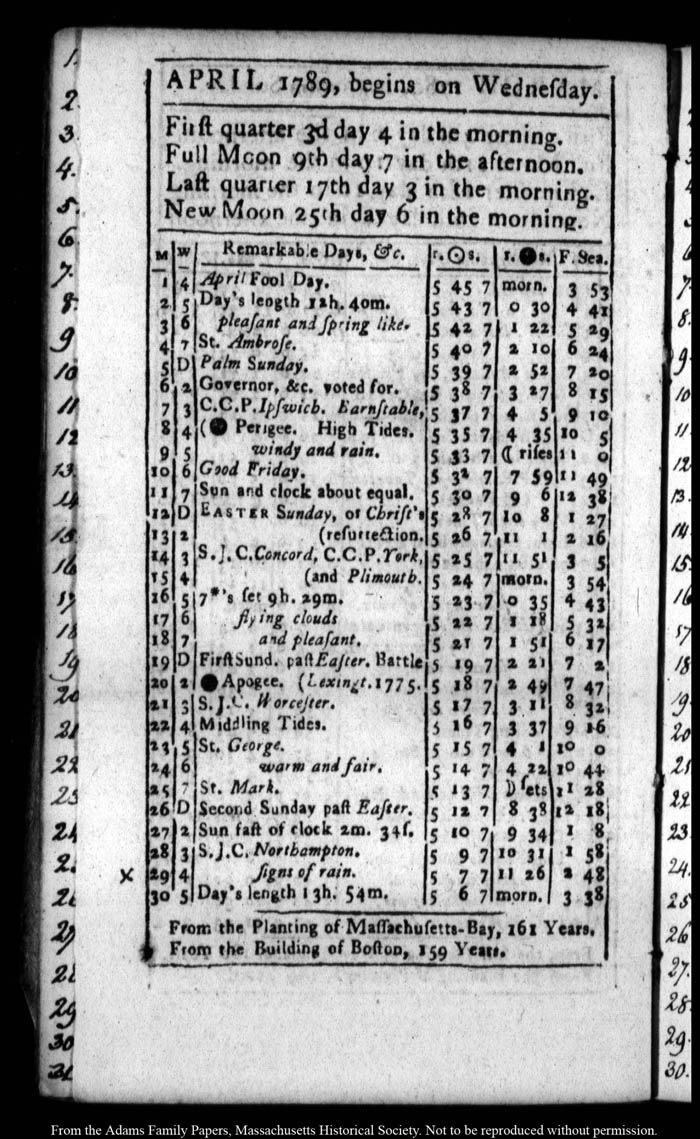 John Quincy Adams diary 14 (almanac), 1789, page 18