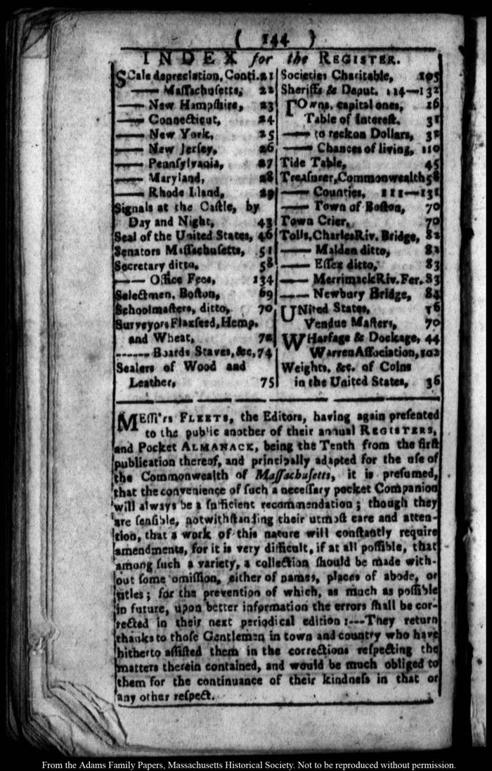 John Quincy Adams diary 14 (almanac), 1789, page 194