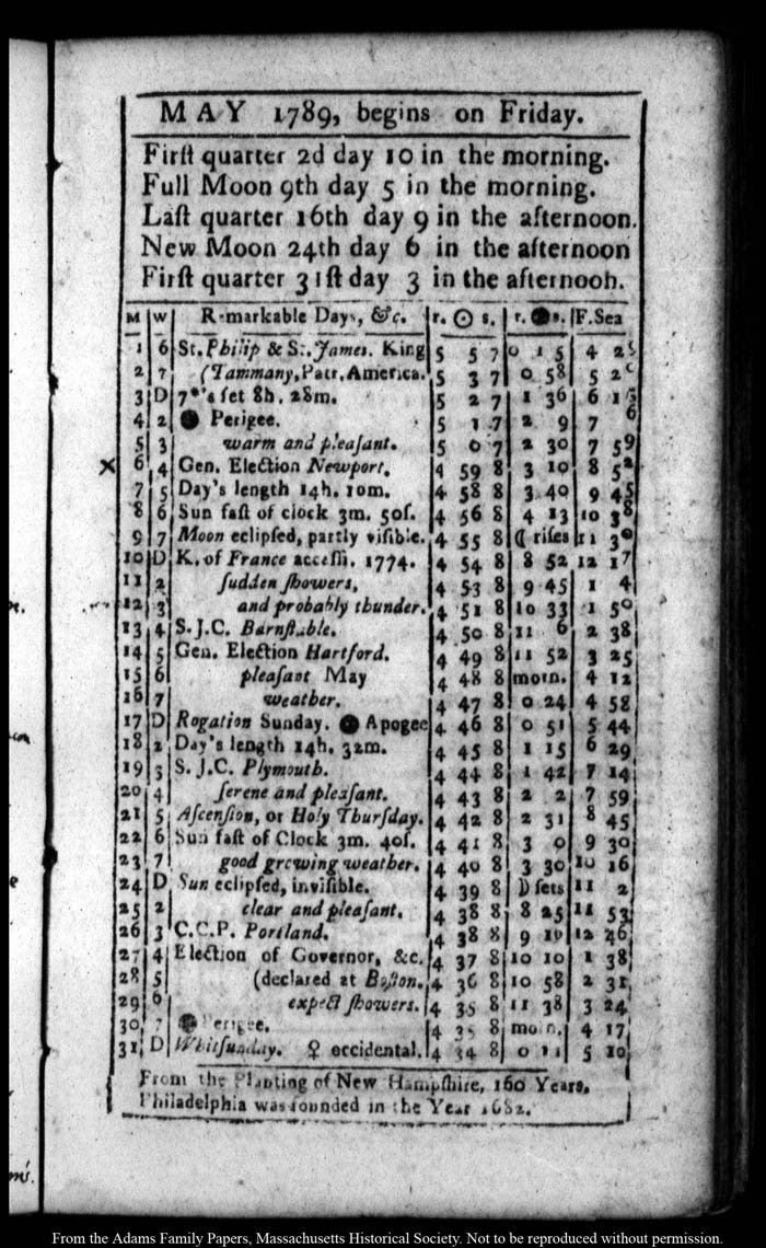 John Quincy Adams diary 14 (almanac), 1789, page 23
