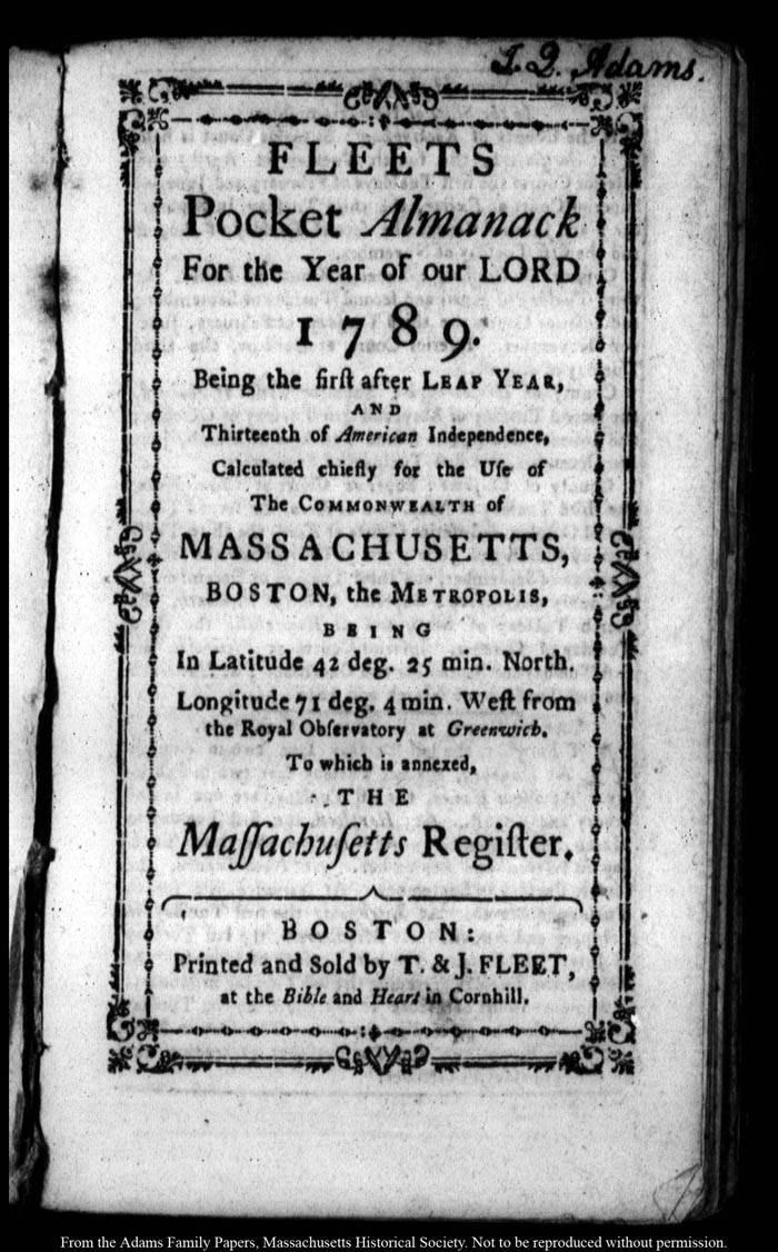 John Quincy Adams diary 14 (almanac), 1789, page 3
