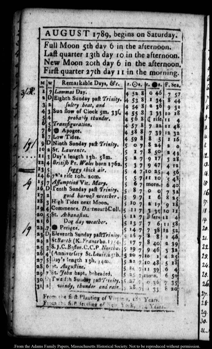 John Quincy Adams diary 14 (almanac), 1789, page 30