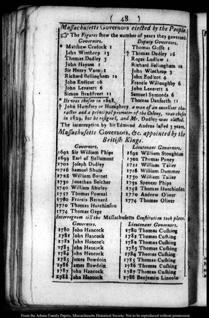 John Quincy Adams diary 14 (almanac), 1789, page 98