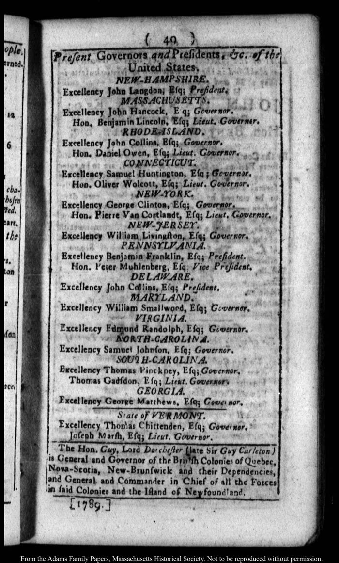 John Quincy Adams diary 14 (almanac), 1789, page 99