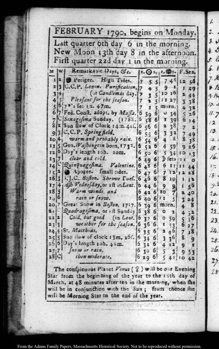John Quincy Adams diary 15 (almanac), 1790, page 10