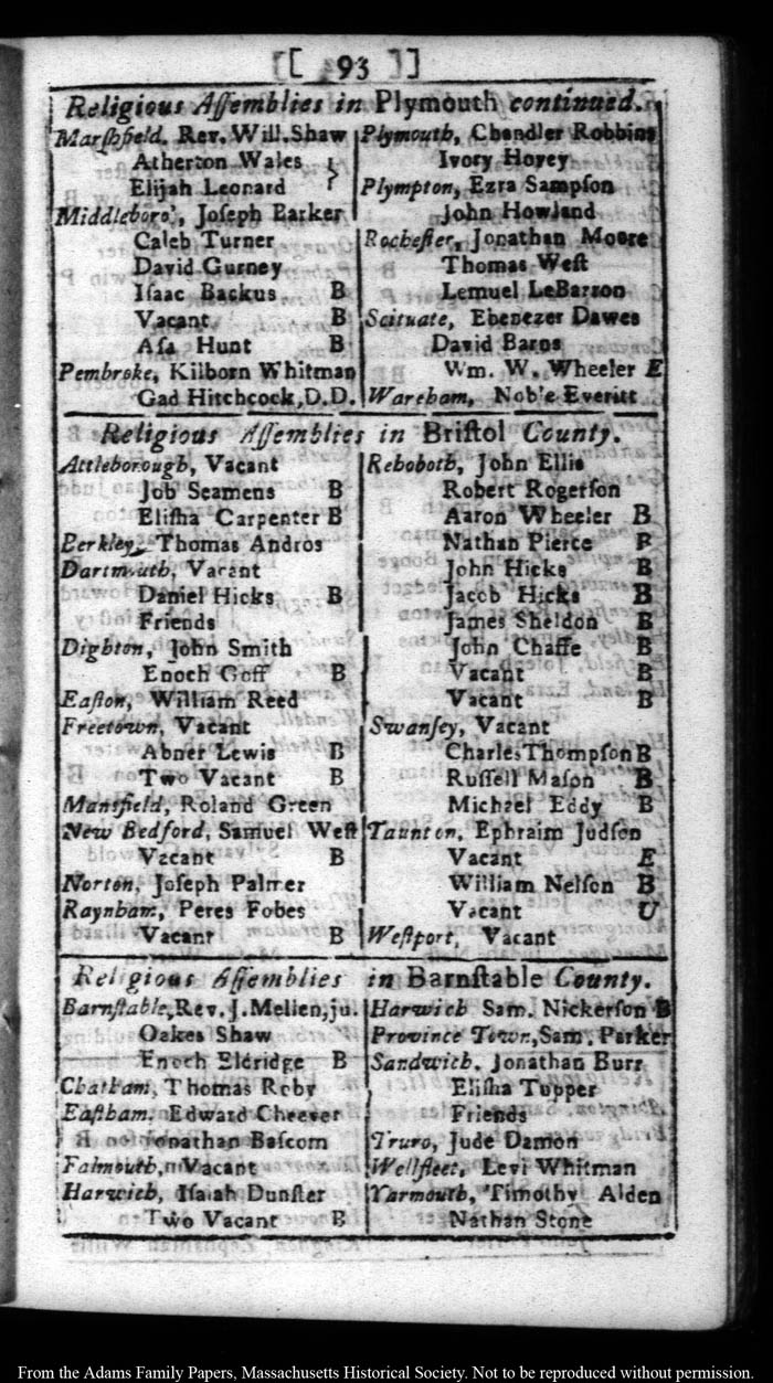 [note: Published page of Fleets Massachusetts Register, &c.,