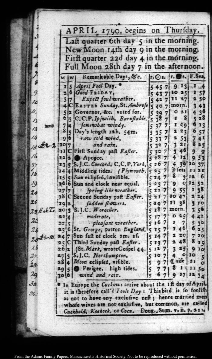 John Quincy Adams diary 15 (almanac), 1790, page 16