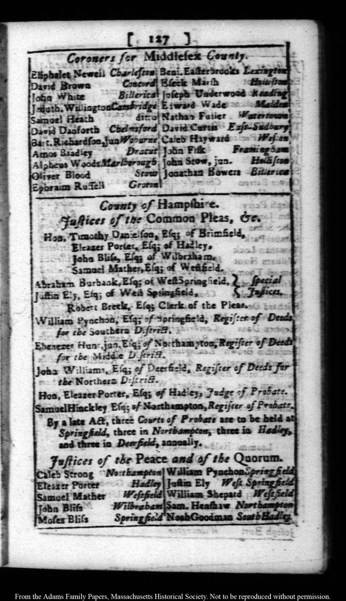 [note: Published page of Fleets Massachusetts Register, &c.,
