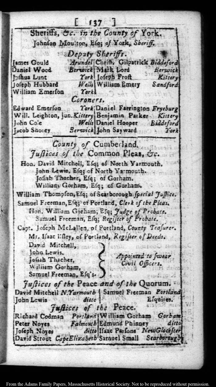[note: Published page of Fleets Massachusetts Register, &c.,