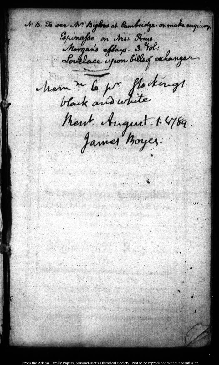 John Quincy Adams diary 16 (almanac), 1791, page 1