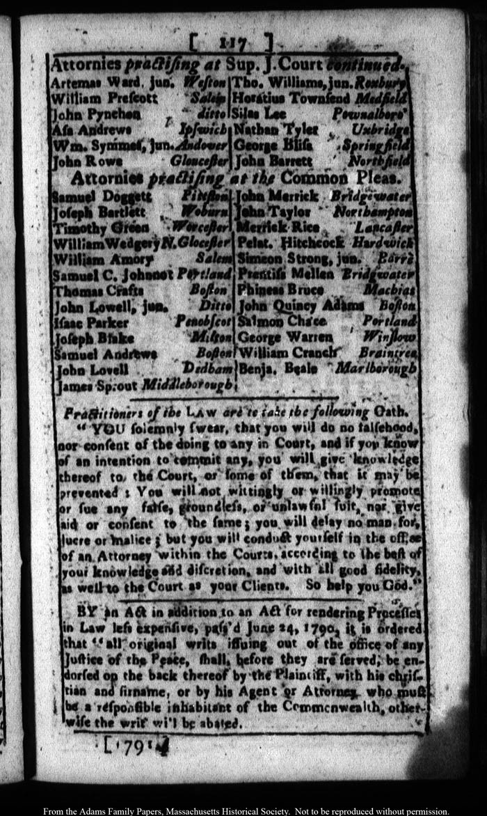 John Quincy Adams diary 16 (almanac), 1791, page 171