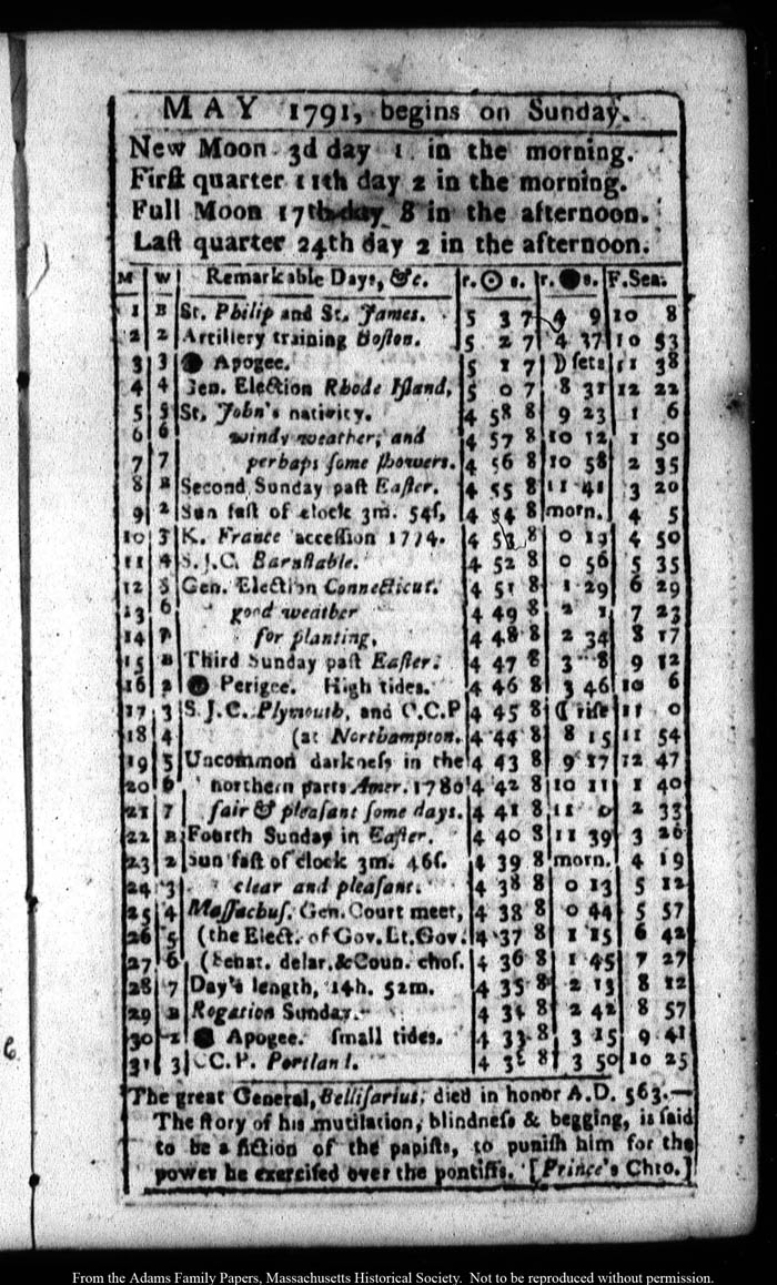 John Quincy Adams diary 16 (almanac), 1791, page 23