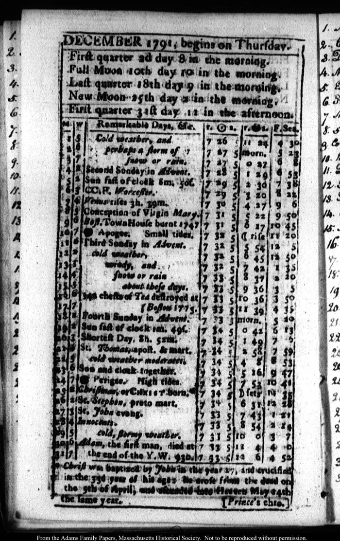 John Quincy Adams diary 16 (almanac), 1791, page 42