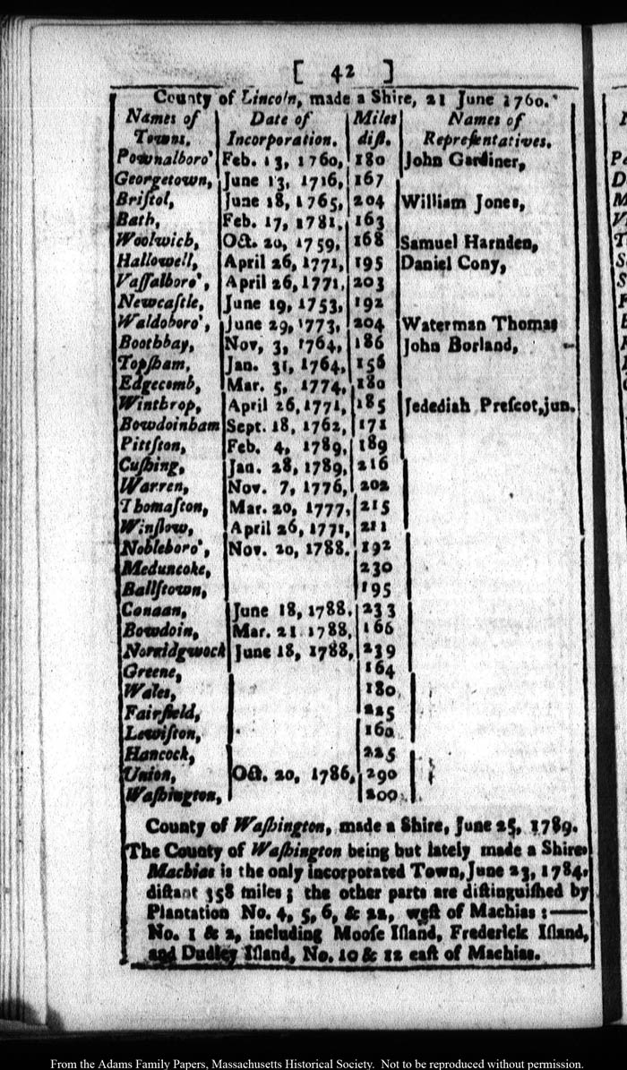 John Quincy Adams diary 16 (almanac), 1791, page 96