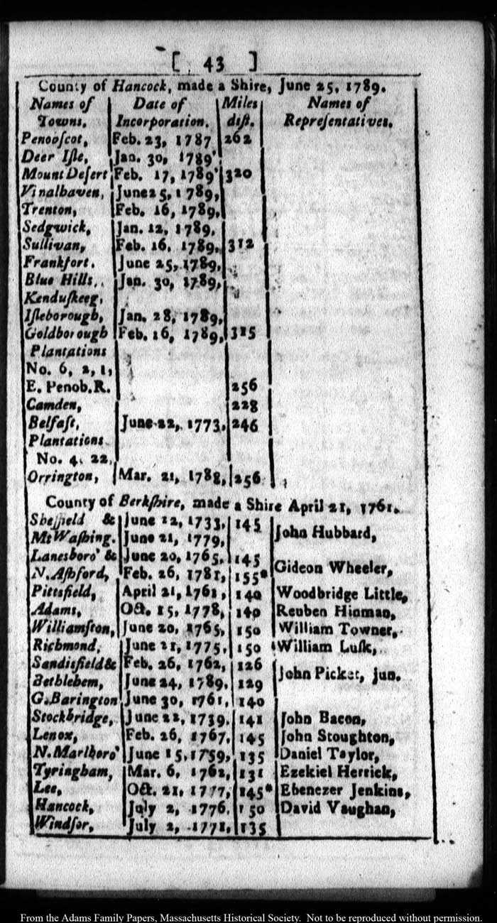 John Quincy Adams diary 16 (almanac), 1791, page 97