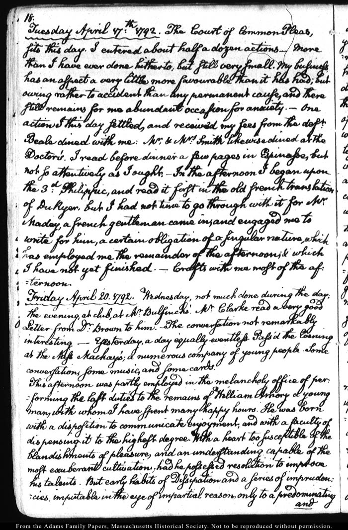 John Quincy Adams diary 17, 1 April 1791 - 5 May 1791, 13 April 1792 - 16 May 1792, page 18