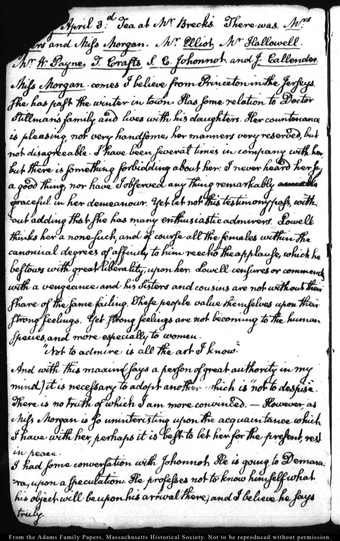 View full, authoritative transcriptions with page images of the diaries at John Quincy Adams Digital Diary part of the Primary Source Cooperative at the MHS.