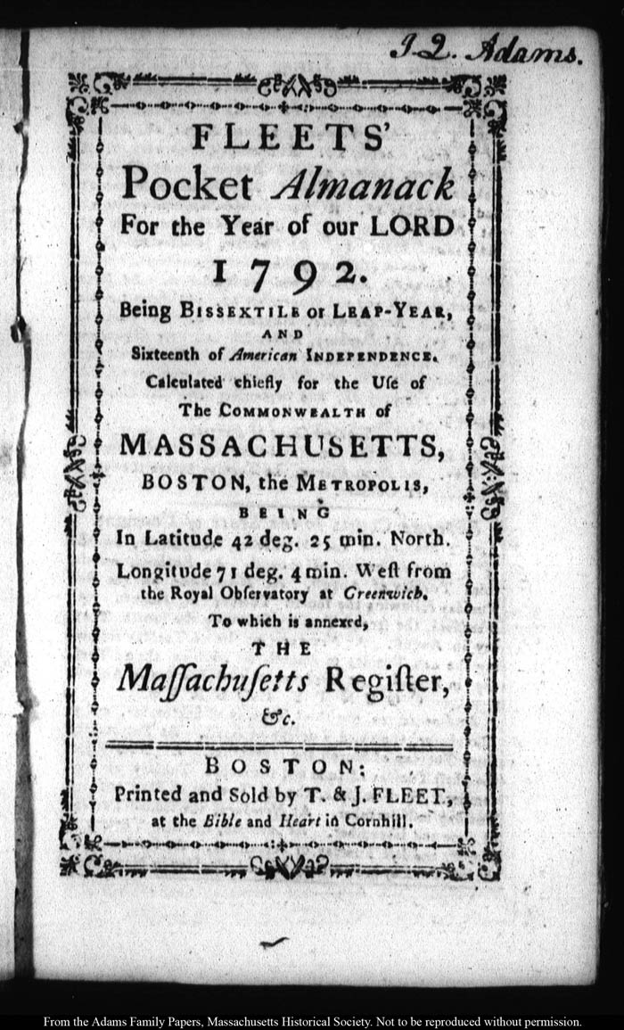 John Quincy Adams diary 18 (almanac), 1792, page 1
