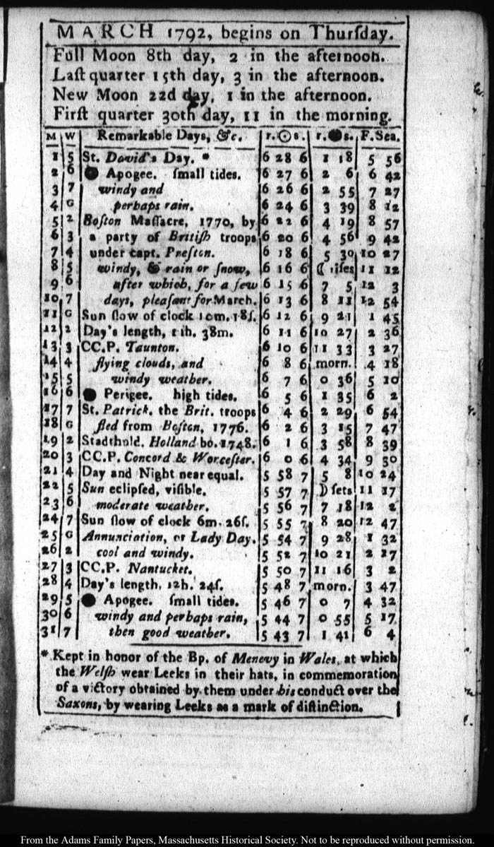 John Quincy Adams diary 18 (almanac), 1792, page 15