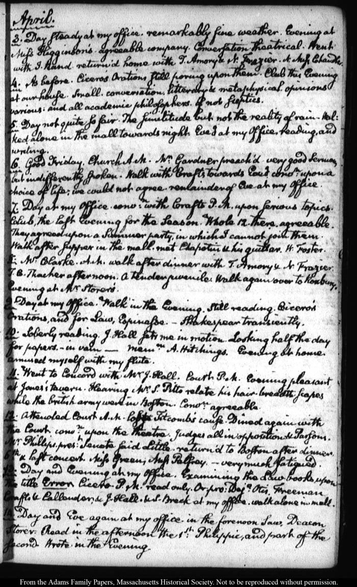 View full, authoritative transcriptions with page images of the diaries at John Quincy Adams Digital Diary part of the Primary Source Cooperative at the MHS.