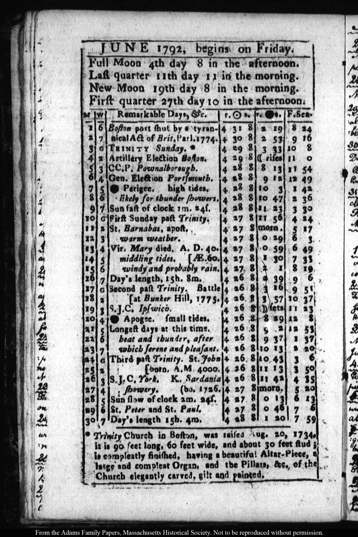 John Quincy Adams diary 18 (almanac), 1792, page 22