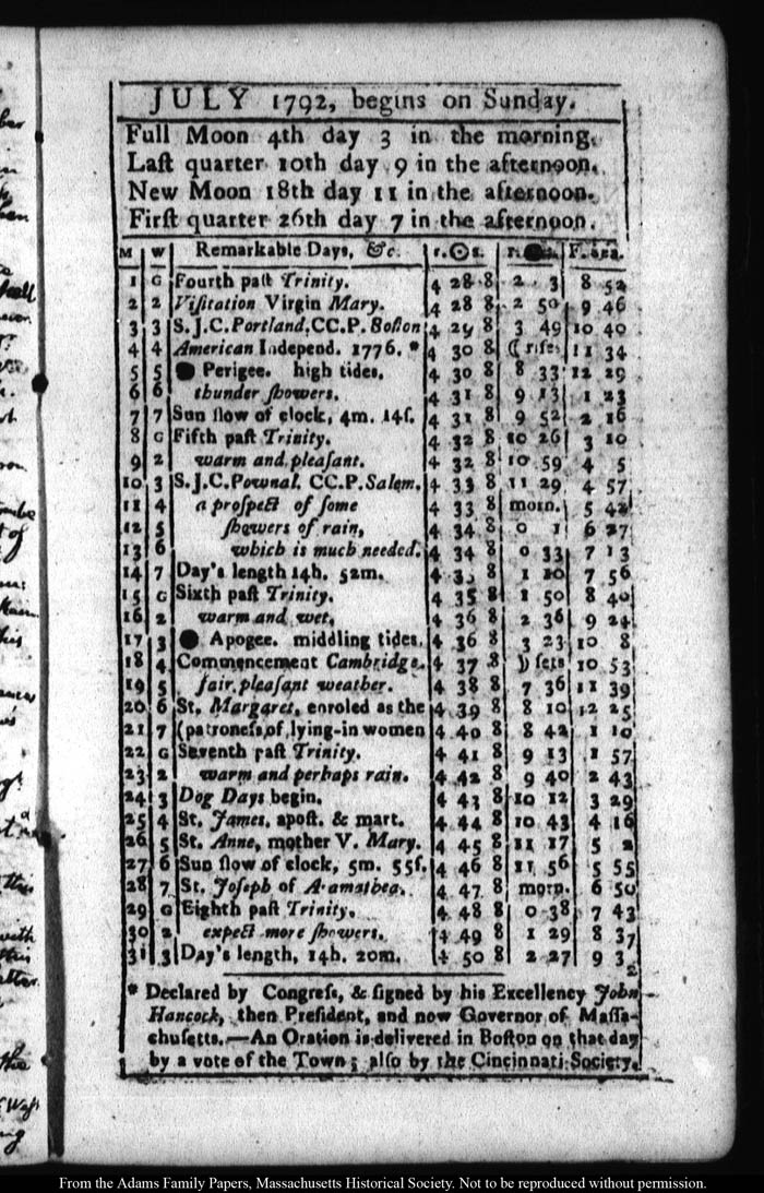John Quincy Adams diary 18 (almanac), 1792, page 27
