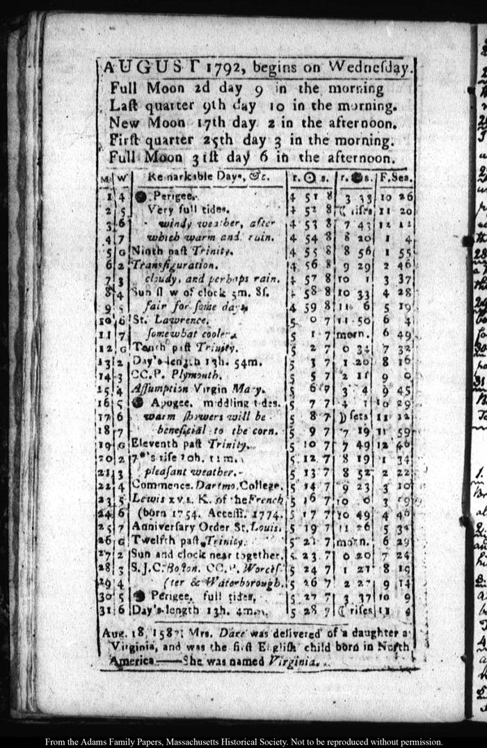 John Quincy Adams diary 18 (almanac), 1792, page 28