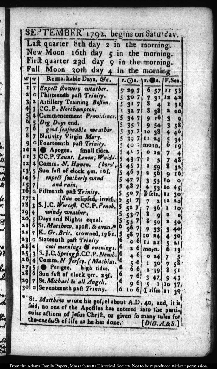 John Quincy Adams diary 18 (almanac), 1792, page 33