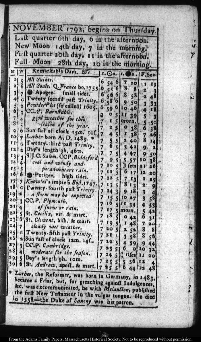 John Quincy Adams diary 18 (almanac), 1792, page 39