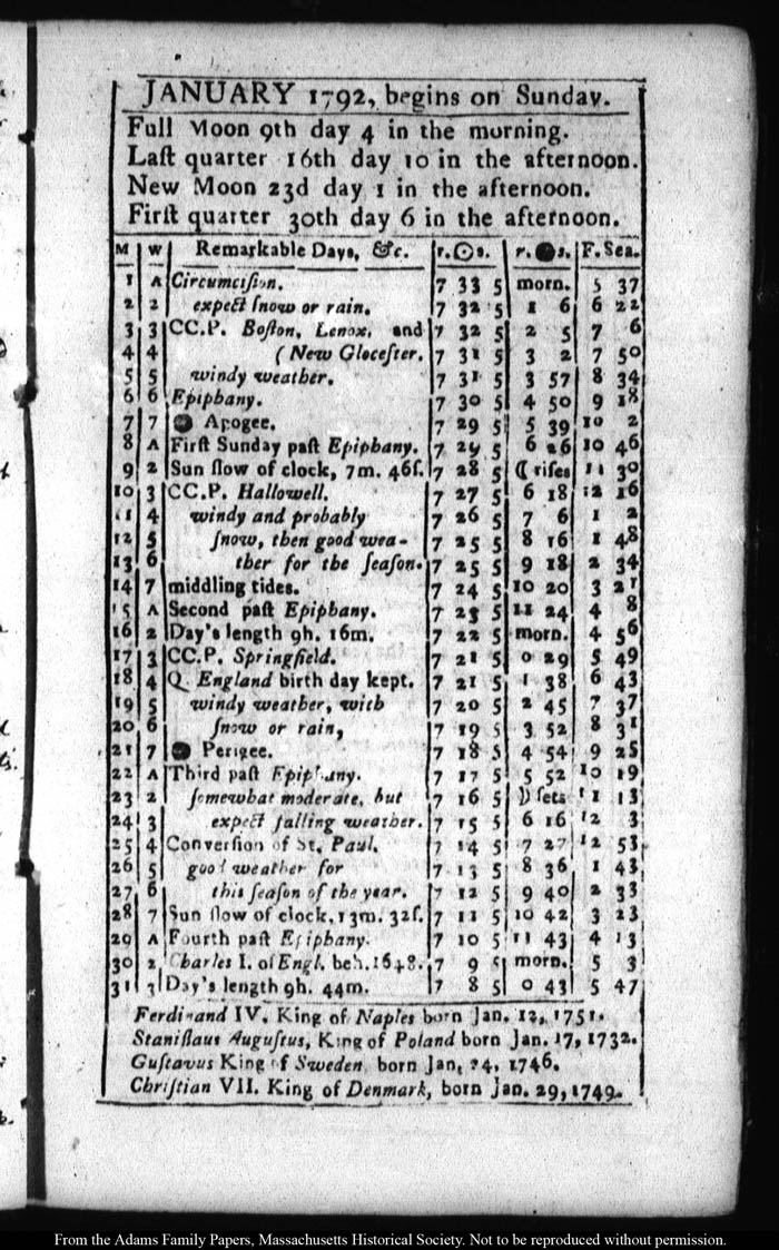John Quincy Adams diary 18 (almanac), 1792, page 9