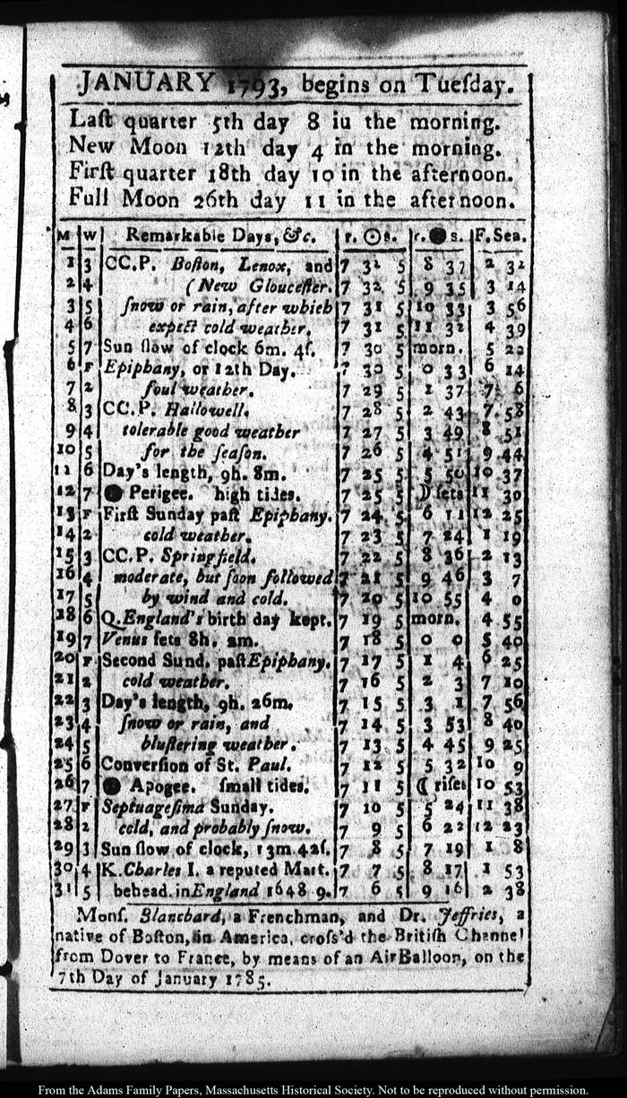 John Quincy Adams diary 19 (almanac), 1793, page 11