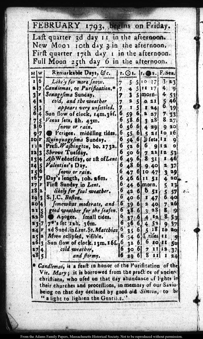 John Quincy Adams diary 19 (almanac), 1793, page 12