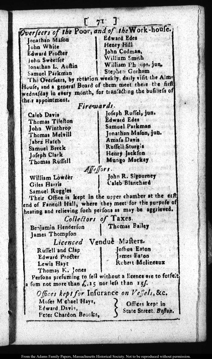 [note: Published page of Fleets Massachusetts Register for