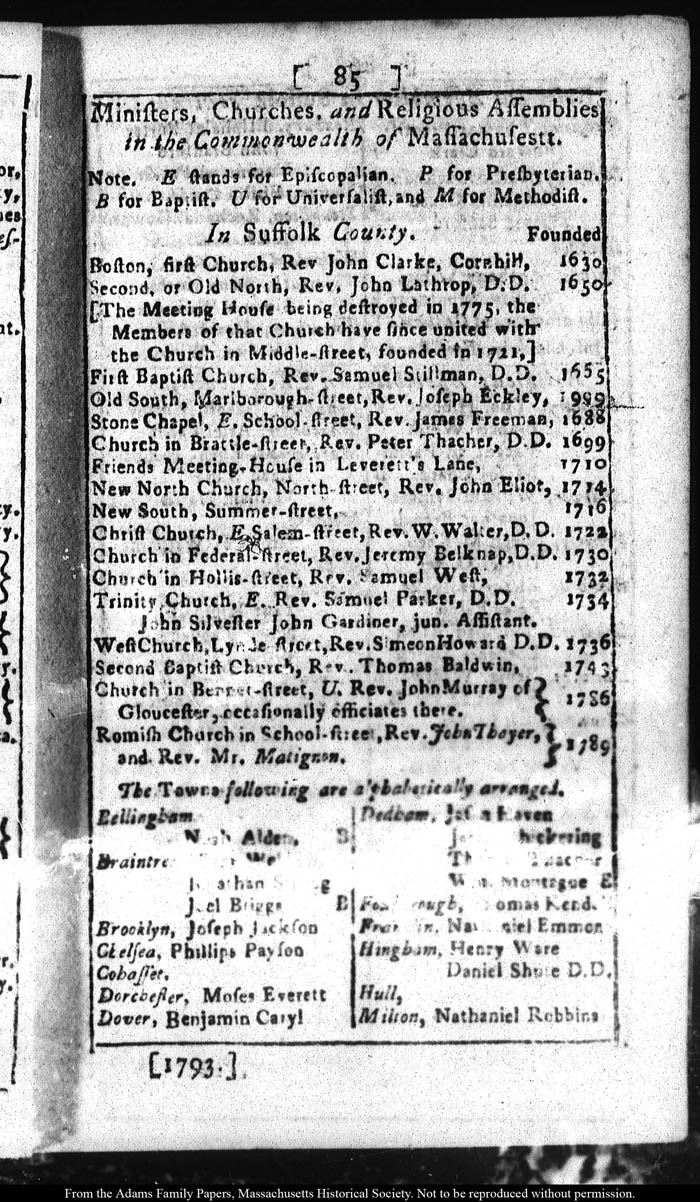[note: Published page of Fleets Massachusetts Register for